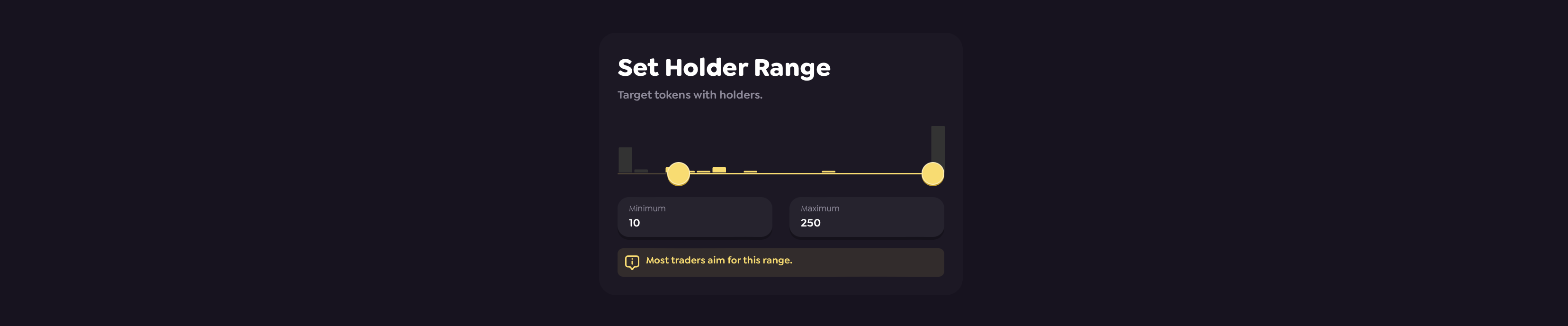 Define the range (Holders) within which your desired Pump.Fun token must include while the purchase